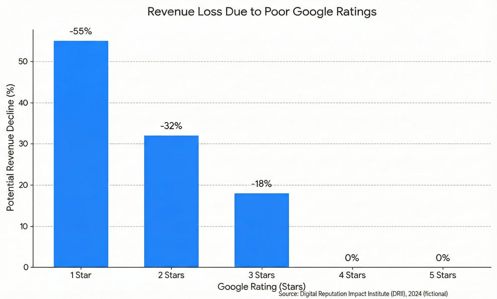 Studies show: Businesses with few or negative Google reviews generate up to 55% less revenue than their competitors. You are losing new customers and sales every day due to your current Google reviews!